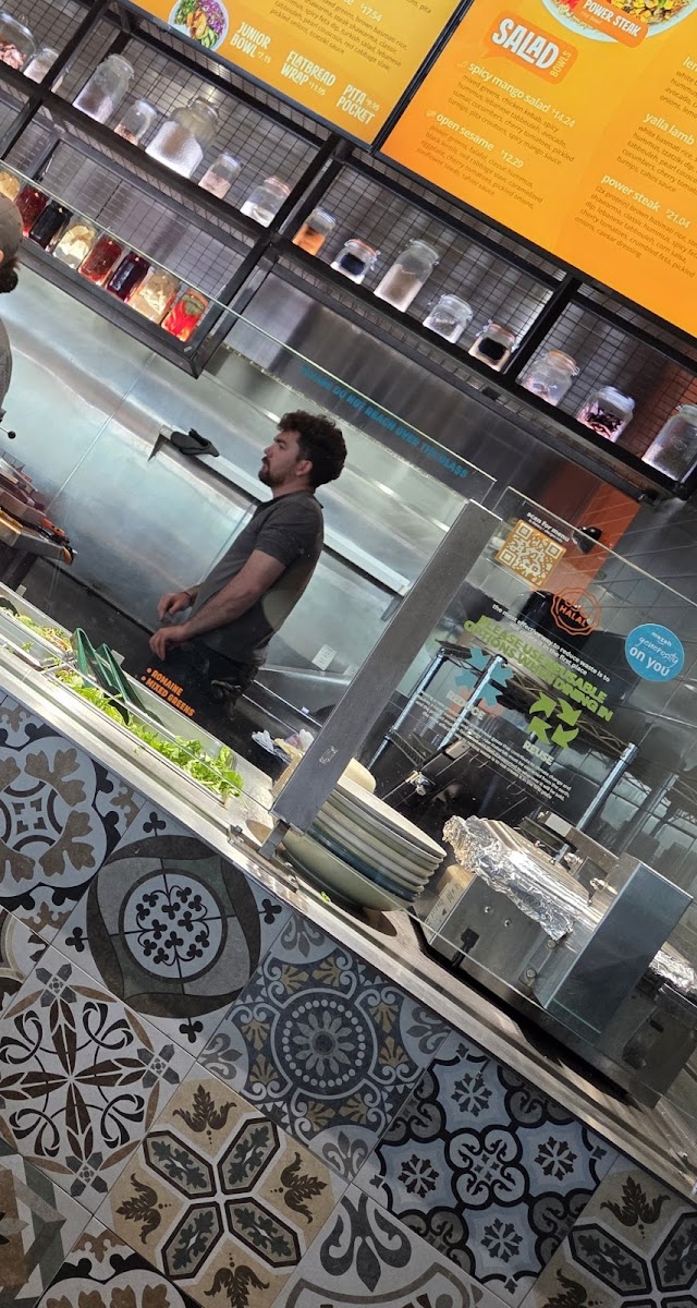 “ Food is great! Alot of fresh, healthy options. My protein of choice is the chicken kebab. Love the house made juice blends and their options. Workers were friendly, great service. The atmosphere is good.. my only gripe is dirty seats. There was old food and crumbs not being cleaned from the actual wooden seat benches. Seeing that these wooden benches have fabric cushions on them.. it seems like the company would have these professionally cleaned quarterly. The fabric cushions were stained up pretty bad. All in all.. this is a great place to eat, friendly staff, nice atmosphere. Definitely would recommend! ”